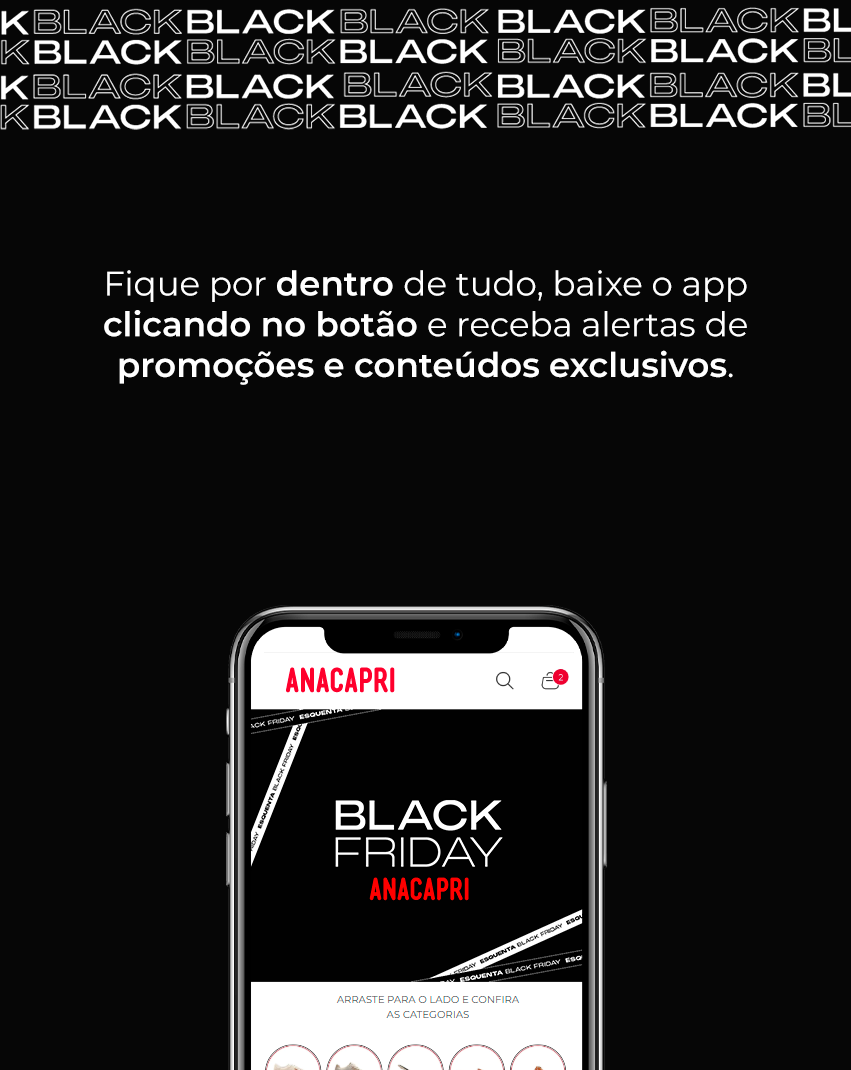 Assim que começar a Black Friday é só acessar nosso site e o App Anacapri para aproveitar!