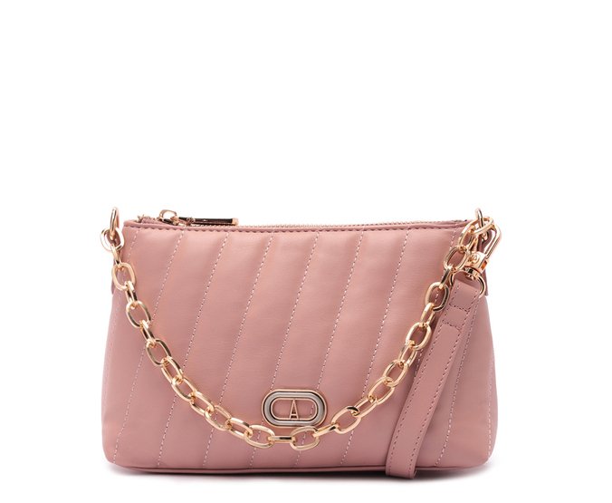 Bolsa tiracolo média em matelassê e correntaria, na cor rosa. O modelo estruturado possui alça em tira transversal, regulável e removível por mosquetão. De material similar ao couro, apresenta detalhe em costura matelassê com efeito em listras com design em diagonal, na capa frontal. Com forro rosê, bolsinho flat e etiqueta exclusiva Anacapri na parte interna. Possui fecho superior em zíper metálico com puxador em tira. Traz aplicação de maxi correntaria metálica imponente, presa na parte frontal da peça e pin metálico em cápsula Anacapri, centralizado na parte inferior da capa frontal.