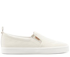 Tênis slip on Lina branco de sola alta. De material similar ao couro, apresenta design de costuras matelassê geométricas por todo o cabedal. Com solado alto esportivo emborrachado e texturizado, apresenta recorte imponente e elástico lateral de mesmo tom do tênis. Traz aplicação de tag marrom lateral Anacapri e puxador em fita de gorgurão no calcanhar, facilitando o calce.